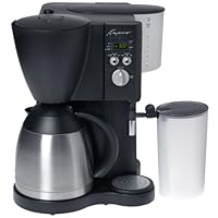This is a fine, easy to use, machine that I''m really enjoying having in my kitchen. I had never used a milk-steamer before, and found the idea a little intimidating. But the process is really quite painless, and now I''m wondering why I did without it so long (even my java-phobic bride is enjoying homemade hot chocolate thanks to the steamer).Anyone who enjoys having a pot of coffee on-call throughout a morning should avoid glass pots like a cliché and instead use a thermal carafe like this one. Not only does it keep coffee steaming hot without constant re-heating, but the wide top and easy-off lid make for easy clean up when you''re done.